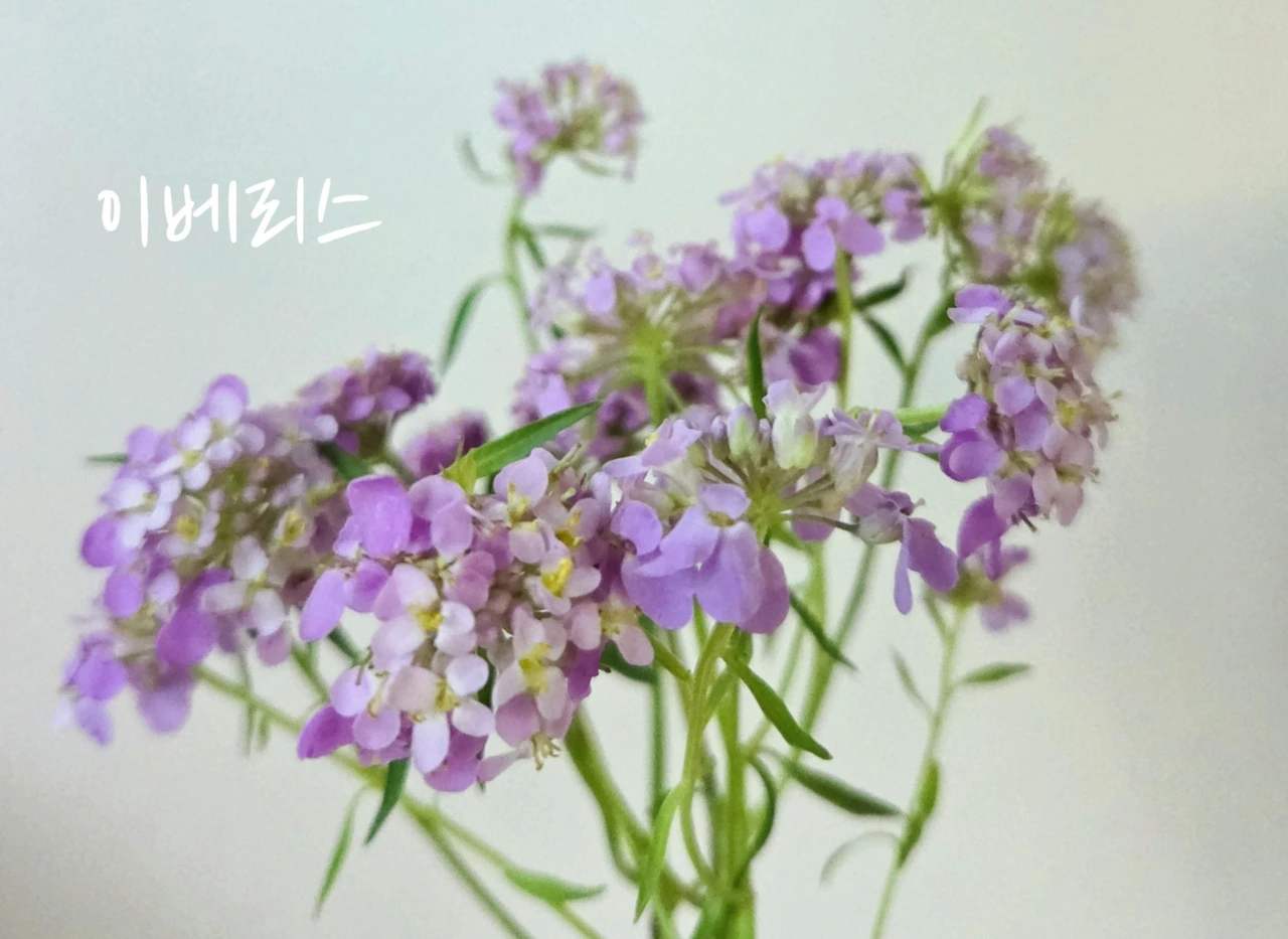 하늘하늘 들꽃느낌을 더할 이베리스는 조금만. 강렬한 포인트가 될 킹델피늄을 살 수 있어서 다행이다!