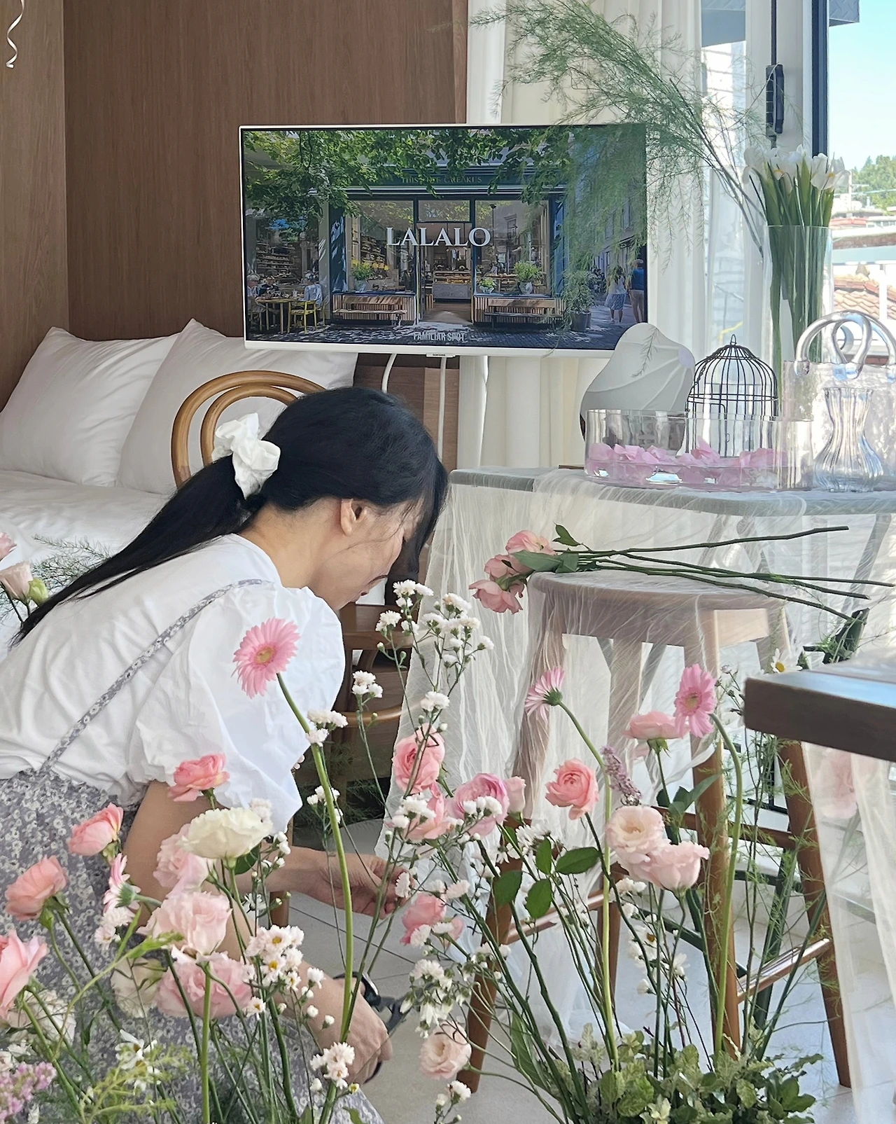 "네! 여기 스튜디오 장식하고 남은 꽃이에요."