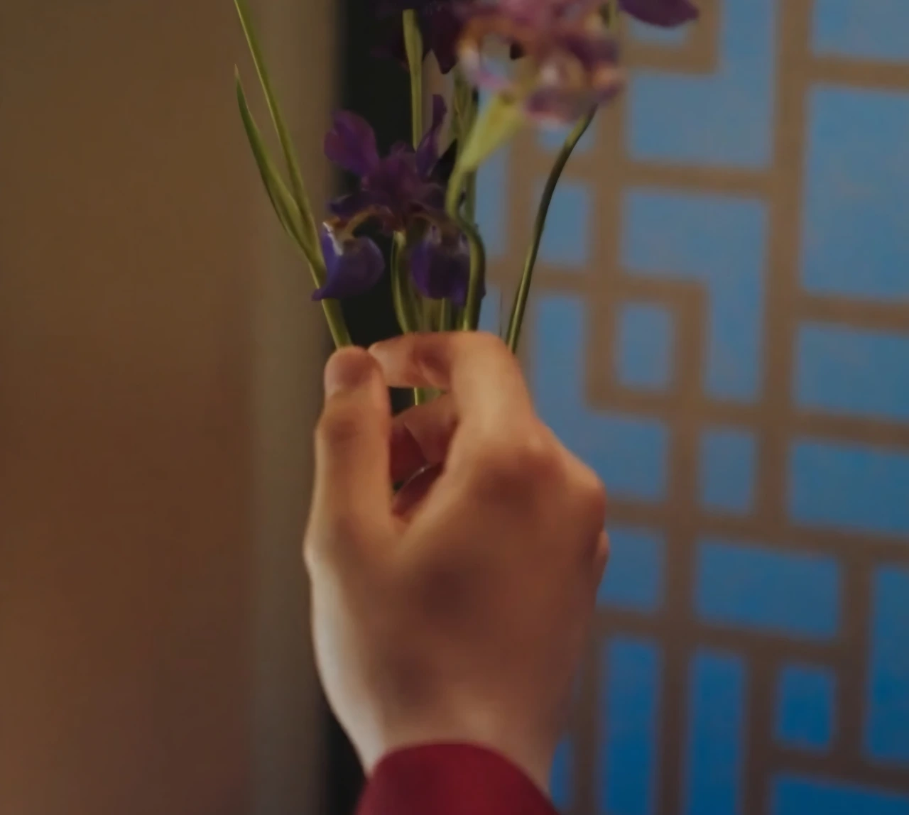 "붓꽃이라.." 하면서 힘을 빼고 쓰다듬는 왕의 손길에서 그녀의 존재가 주는 의미가 전해진다. 호박넝쿨을 받았더라도 두근거리며 바라보았을 만큼 사랑에 빠졌겠지만 말이다. (제일 덜 예뻐 보이고 이름도 낭만과는 거리가 먼 풀을 꽂아보는 이 상상으로 결혼 14년 차 플로리스트는 혼자 웃는다) 그가 이렇게 살금살금, 초속 0.5cm로 닿아본 생명체가 또 있을까. 왕에게 필요했던 건, 움켜쥘 수 있는 존재가 아니었다. 따스하게 바라보고 미소 지을 수 있는 부드러운 온기였다.