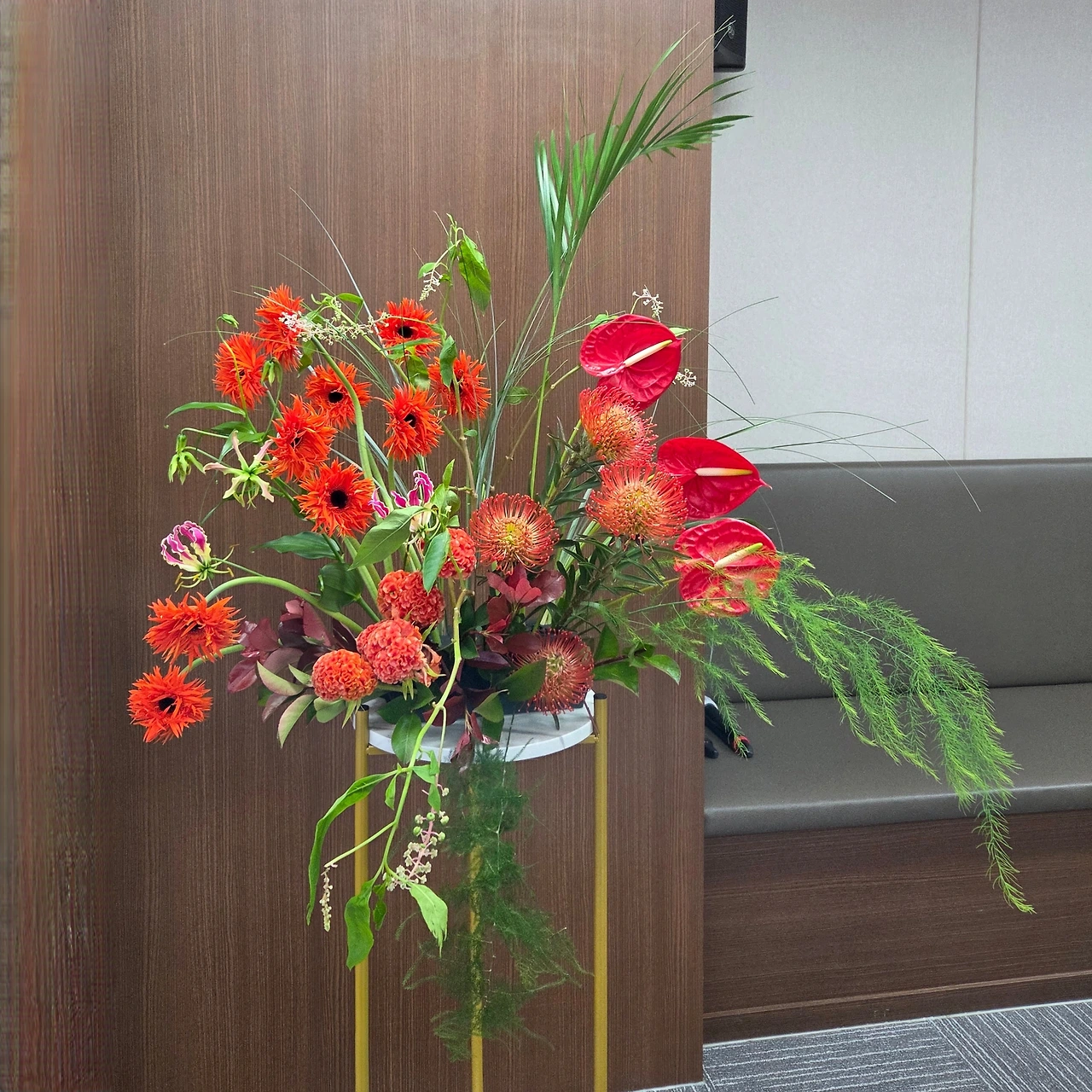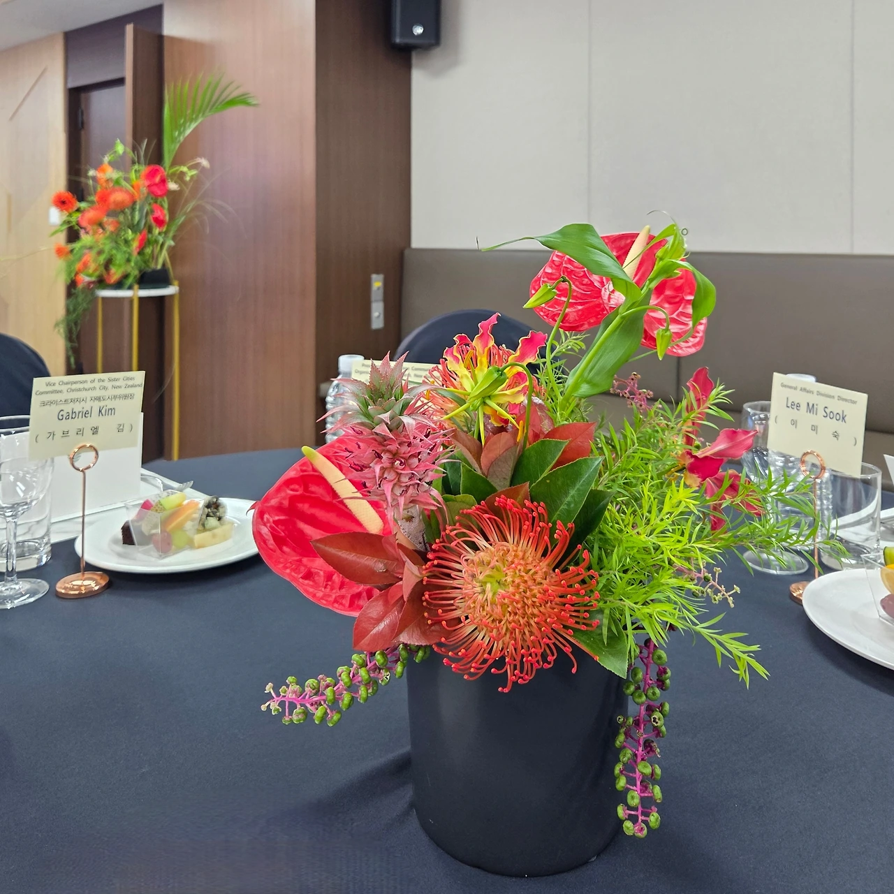 남의 돈은 많을수록 좋다. 특히 150여만 원어치쯤 되면 심히 신난다. 보내드린 시안 중에 '트로피컬 느낌으로 화려하게'를 골라주셨을 때는 더욱 기대된다. 가을의 문턱이고 테이블보가 블랙이니 강렬한 다홍으로 덮자. 국제행사답게 시선을 사로잡도록. 이 에르메스 컬러조합을 애정한다.