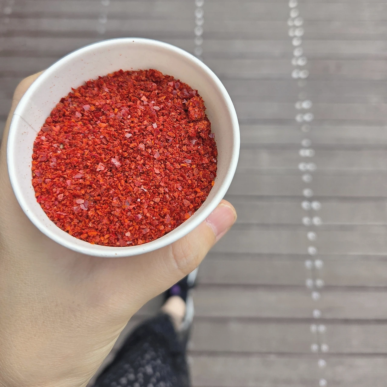 체감으로 10분이 흐른 후 마침내 직원이 고춧가루 한 컵을 건넨다. 금 한 돈 같다. 값을 매길 수 없으니 그냥 가져가라고 하신다. 감사하다고 하고 종이컵 윗부분을 다른 한 손으로 막고 뛴다. 좀 더 격하게 감동을 표현했어야 하나 생각이 들지만 어쩔 수가 없다.