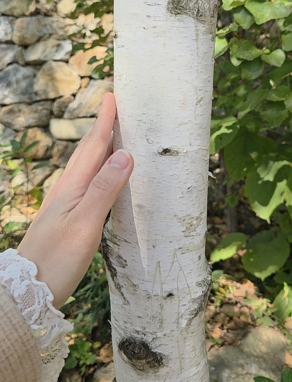 빨강머리 앤이 얼굴을 기대기 좋아했던 자작나무도 화담숲에 가득하다. 보통 나무껍질은 까끌하다고 생각들 하는데, 만져보면 그렇지 않은 경우가 많다. 그중에서도 자작나무껍질, 특히 관리 잘 된 화담숲 자작나무 껍질은 보드랍다. 한번 손으로 쓰다듬어보면 처음이 낯설지 빠져든다. 앤처럼 볼로도 감촉을 기억하고 싶어질 게 분명하다.