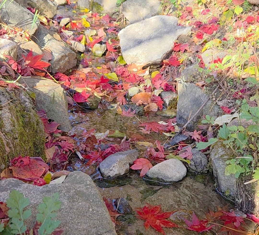 다른 곳에서 듣기 어려운 가장 설레는 소리는 시냇물 소리다. 주차장에서 정문으로 오는 길, 사람들이 많이 택하는 시멘트 길 바로 위에 산길이 있다. 졸졸졸 하고 귀엽게 흐른다. 어릴 적 실로폰 같은 맑은 소리. 화담숲 안에서는 이렇게 작은 물길은 없어서 들을 수 없다. 조금 더 아름다운 불편함을 잠시 택한 호강 치고 횡재에 가깝다. 빨강머리 앤이 집 근처에 시냇물이 있기를 그토록 바랬을 만하다.