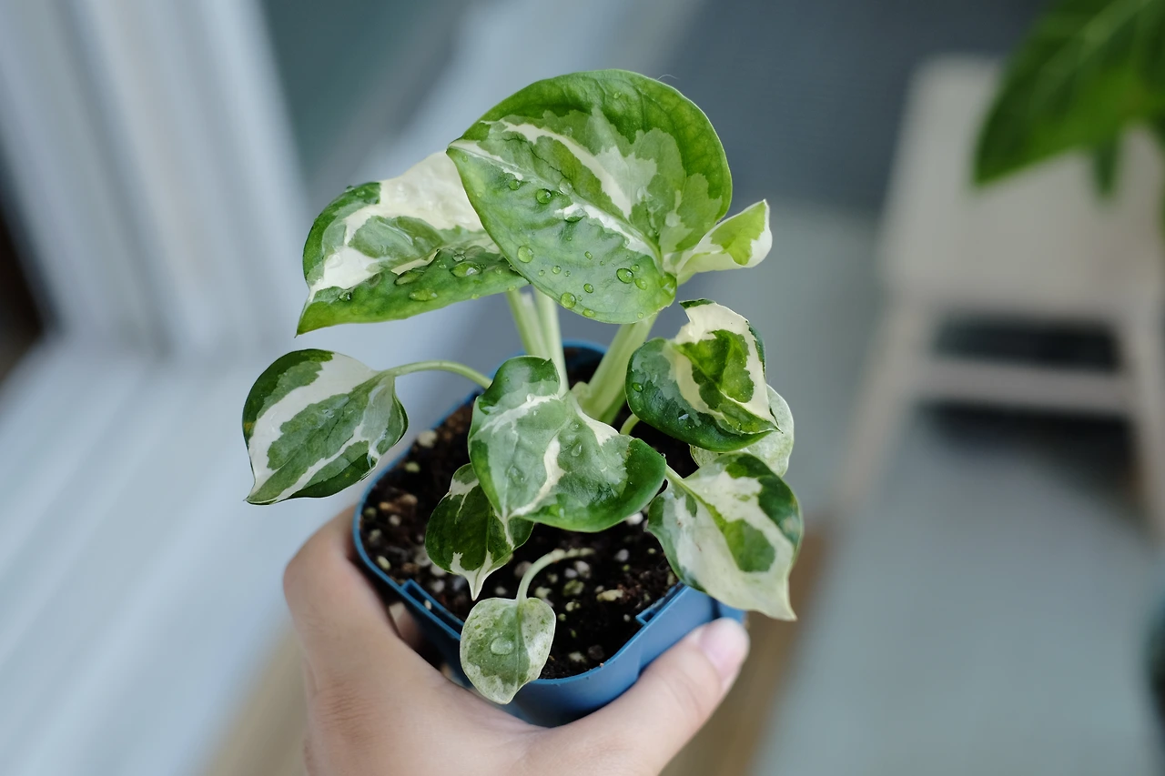 잎의 흰색 무늬가 물감 번지듯 번져있는 모습이 참 예쁜 무늬종이지만 이 역시 스킨답서스의 재배종이므로 스킨만큼 쉽게 키울 수 있을 거라 생각했다.