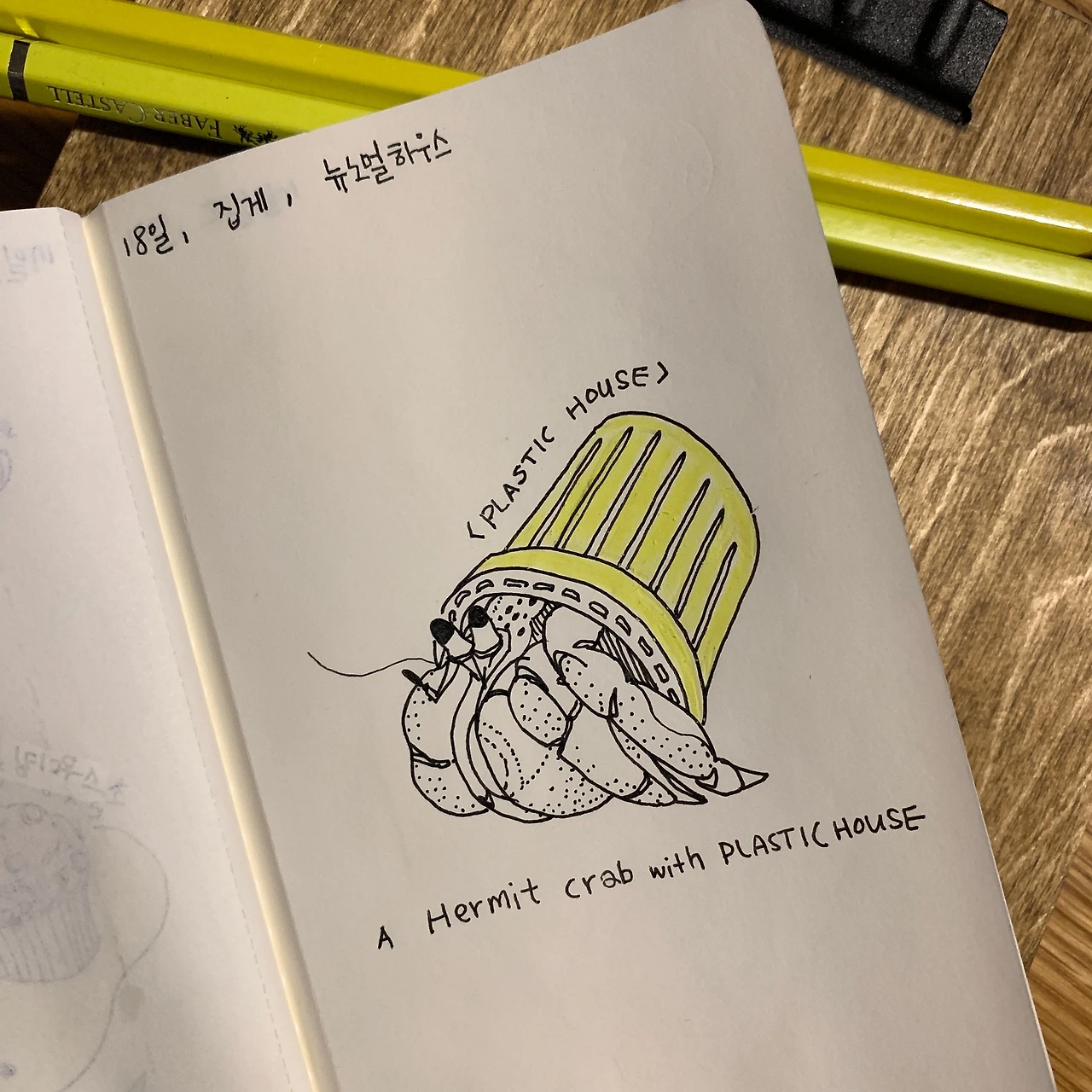 바닷속에서 고둥 껍데기보다 더 찾기 쉬워진 치약 뚜껑을 집으로 삼은 집게(소라게)가 어쩌면 더 재활용을 잘하고 있는 게 아닌가 싶다.