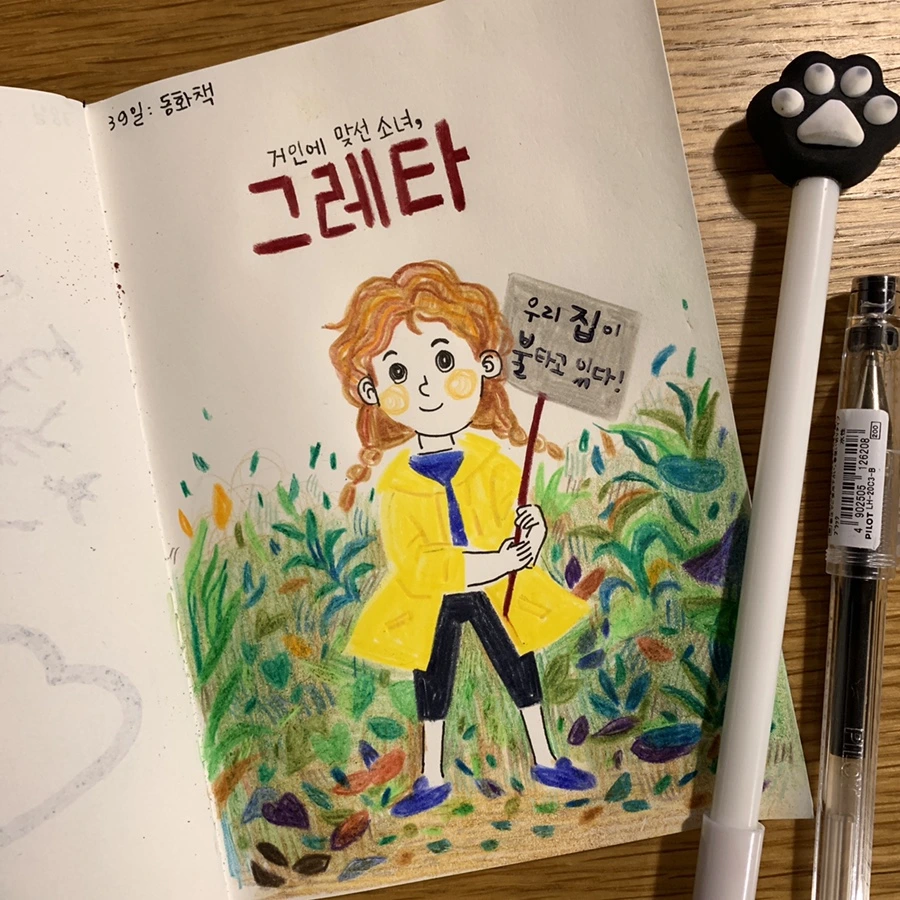 2019년 미국에서 열린 UN 기후행동 정상회의에 참여하기 위해 비행기를 타는 대신 태양광 요트로 대서양을 건너고, 세계의 정상들 앞에서 기후위기의 심각성에 대해 미래 세대를 대신해 비판의 목소리를 높였던 그레타 툰베리의 이야기를 담은 그림책이 바로 이 책, <거인에 맞선 소녀, 그레타>이다.