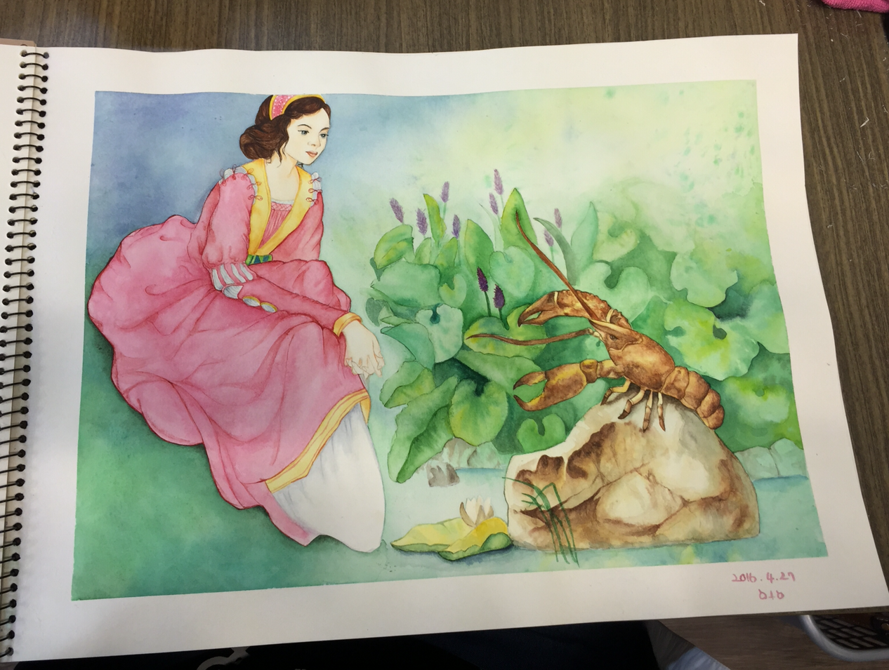 센터에 연잎들은 채색하고 물로 색감을 풀고