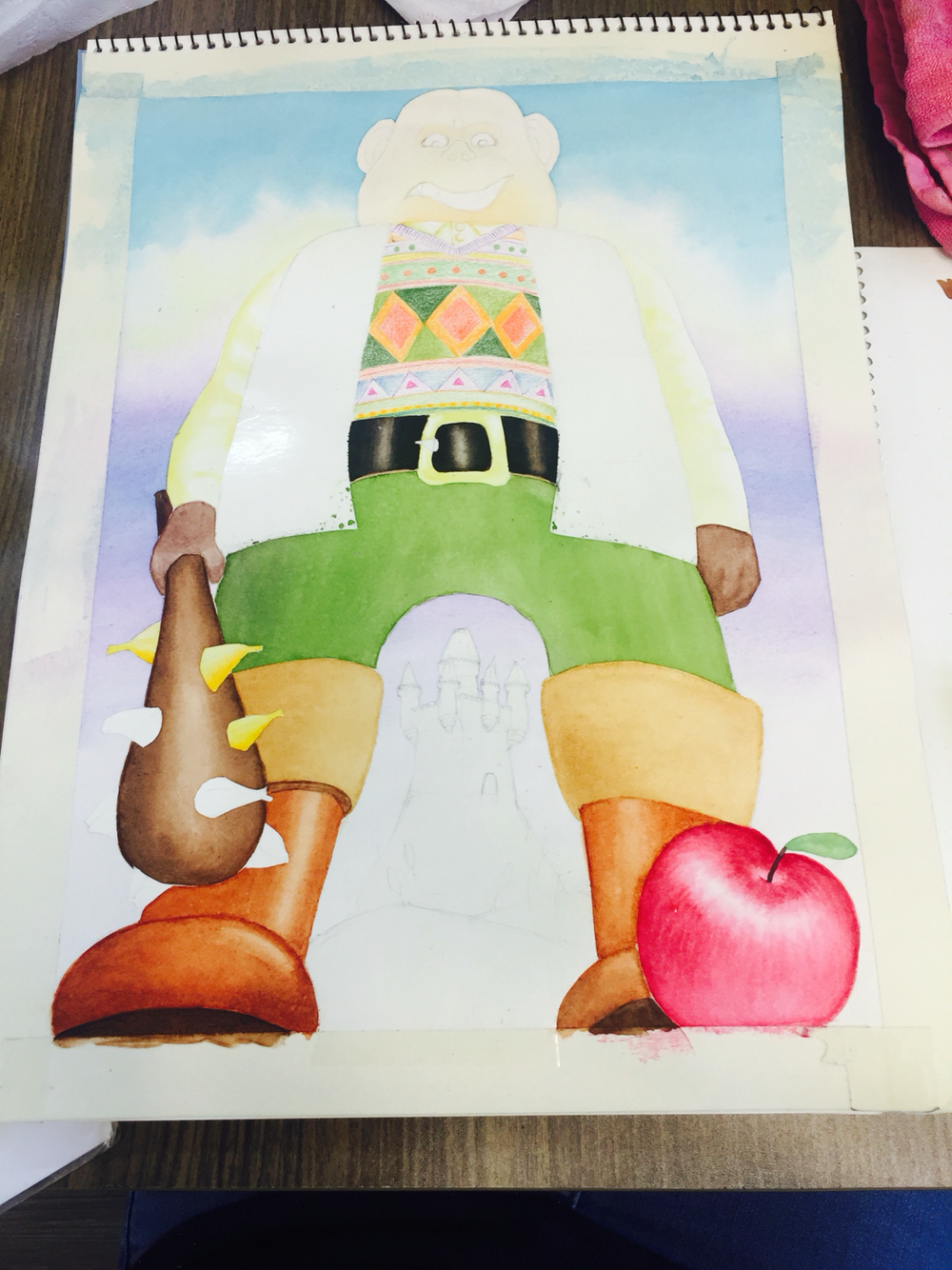 밑색을 물을 적게 쓰고 바탕색을 까신 다음에