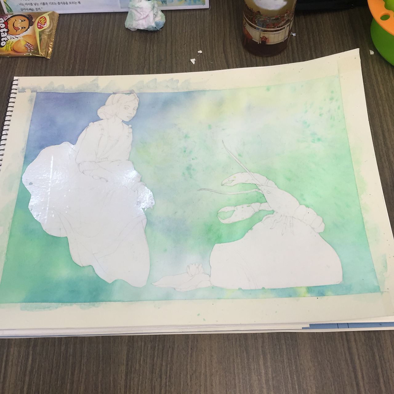 스케치를 쓱쓱 뜨고 중요한 왕비님과 가재는