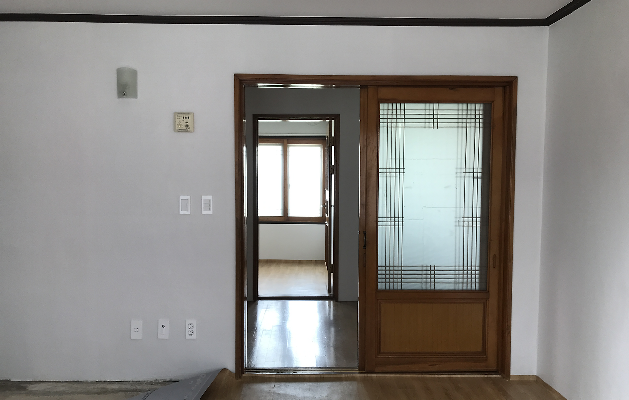 타일은 고민 끝에 까대기로, 미닫이문 문틀은 아래쪽만 없애주기로 하셨다. 문틀의 아래쪽만 떼다 보면 바로 옆 마룻바닥이나 나머지 문틀에 손상이 갈 가능성도 있다고 했지만 그 부분은 감수하기로 했다. 그 외에 또 철거하기로 한 것은 오래된 집의 분위기와 어울리지 않았던 아파트식 대형 신발장, 부엌 싱크대와 상하부장, 욕실에 들어있는 모든 것, 그리고 십자가 모양의 싸구려 형광등, 장판 등이다.