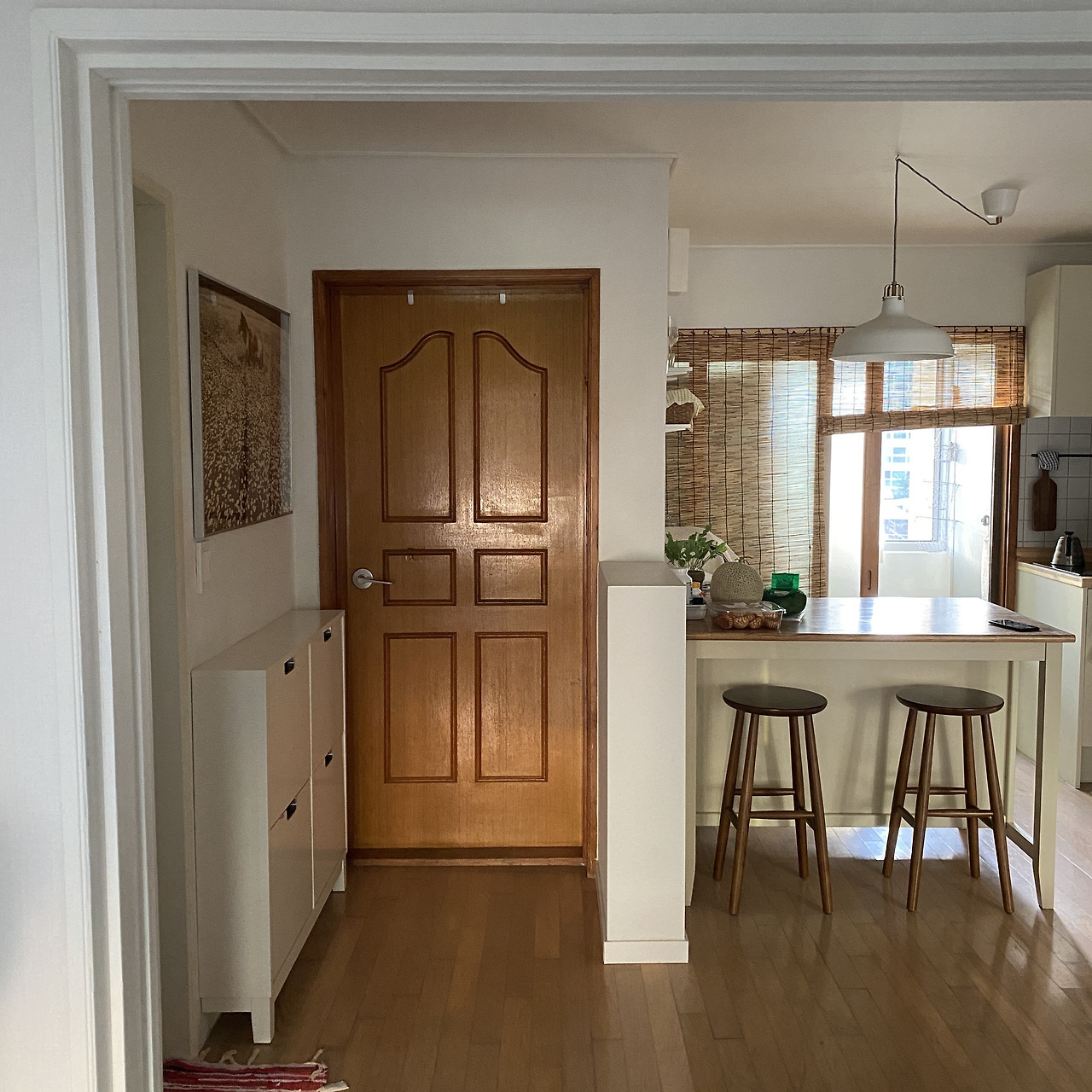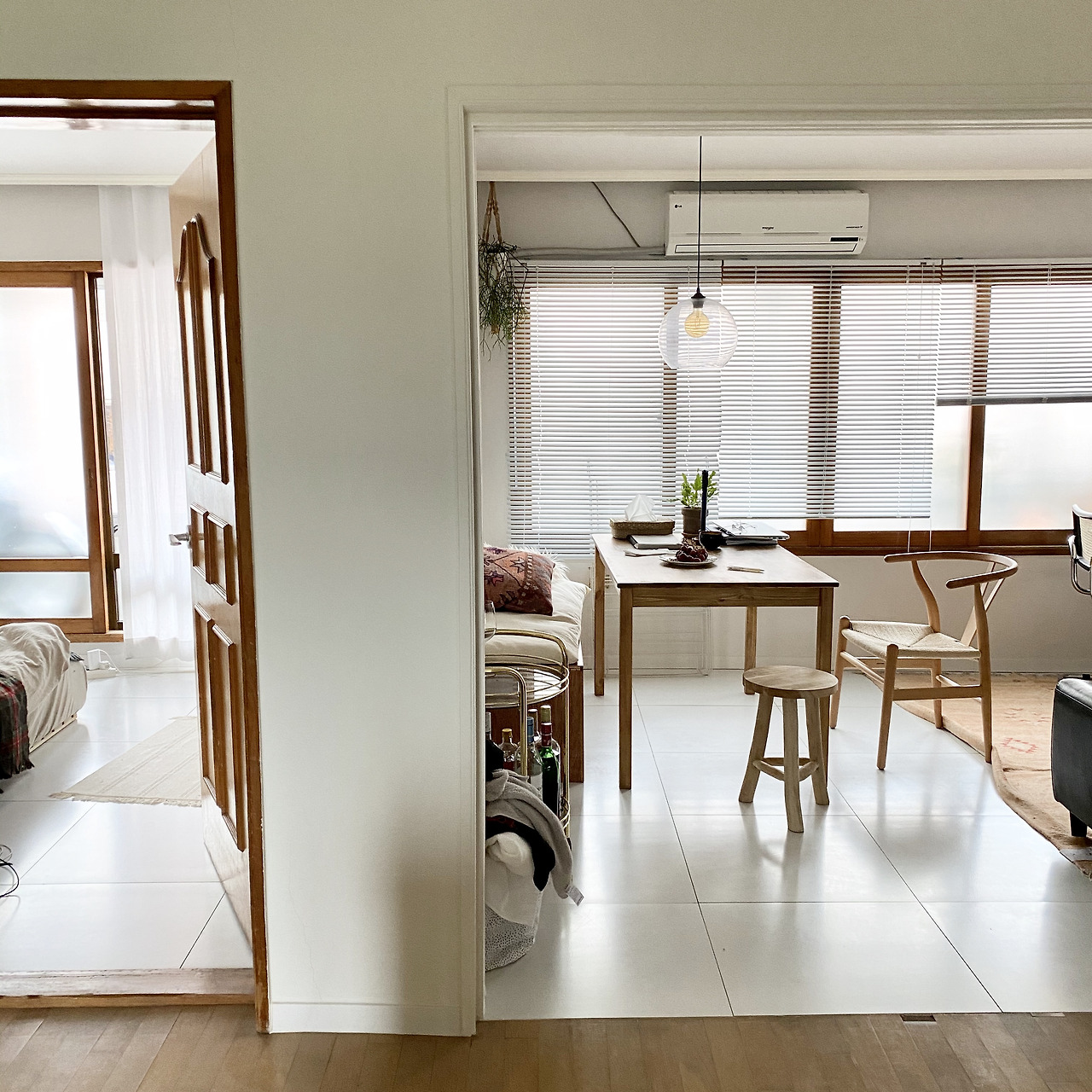 코로나가 시작되기 전 종종 여행을 다닐 때에는 에어비앤비를 샅샅이 뒤져 마음에 쏙 드는 집을 여행지 숙소로 정하곤 했다. 나의 취향은 너무나 확고해서 런던, 뉴욕, 파리에서 묵었던 숙소들을 쭈욱 나열해 두고 살펴보면 같은 집이 아닐까 하는 생각이 들 정도로 참 일관적이었다. 걸을 때마다 삐걱거려서 고양이처럼 사뿐히 걸어야 하는 원목 마룻바닥, 그 위를 덮고 있는 빈티지한 패턴의 카펫. 그리고 가장 중요한 하얀색 벽. 페인트로 마감되어서 뽀얗고 매끄럽고 요철이 없는 그 벽들에 나는 항상 매료되곤 했다. 여행이란 눈에 보이는 모든 것을 아름다워 보이게 만드는 속성이 있어서, 페인트 벽이 아니라도 뭐가 되었든 반해버렸을 것 같긴 하다. 하지만 생경한 도시 속 새하얀 페인트 벽과 거기서 느껴지는 살짝 서늘한 감촉은 내 시각과 촉각을 유달리 황홀하게 했다. 그런 기억들이 모여 결국 나를 셀프 페인팅의 세계로 이끈 것이었다. 우리집 벽에 페인트가 칠해져 있다면 매일이 여행 온 기분일 것 같았다.