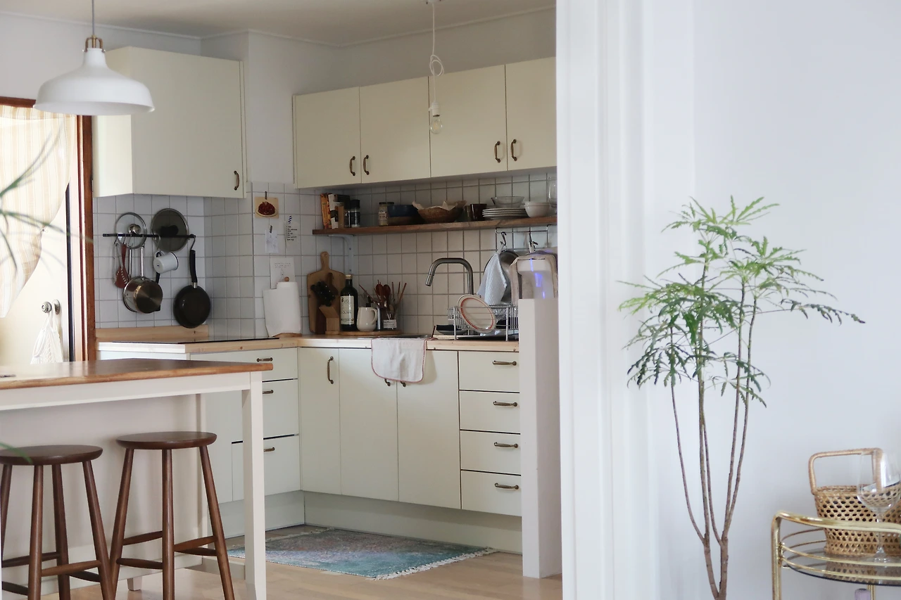 누렇게 뜬 타일은 걷어냈고, 칙칙하고 어두운 색의 싱크대 상하부장도 싹 다 철거했다. 부엌 공간에 착 가라앉은 분위기의 싱크대 상하부장이 떡하니 자리 잡고 있으니 안 그래도 좁은 부엌이 더 좁아 보였다. 상부장 없는 부엌을 해보고 싶기도 했지만 그러면 수납공간이 너무 부족하게 될 것 같아 포기하고, 그 대신 상부장 높이를 짧게 제작하기로 했다. 그 밑에는 기다란 원목 선반을 달기로. 상판과 상하부장까지 전부 원목으로 하고 싶은 마음이 컸지만 그러면 돈이 너무 많이 들고 우리가 이 집에 언제까지 살게 될지 몰랐기 때문에 굳이 큰돈을 쓰지는 않기로 했다. 상판은 원목으로, 나머지 부분은 가장 저렴한 MDF 재질로 제작하면 비용을 절약할 수 있을 터였다. 저렴한 재질이라도 그 위에 우리가 원하는 색상의 페인트를 정성 들여 칠하면 분명 싸구려처럼 보이지만은 않을 것 같았다.