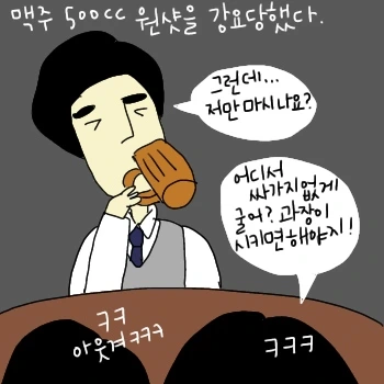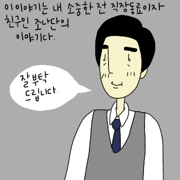 고통받는 분들에게 힘이 되고 싶어 제 친구 조나단의 이야기를 그림으로 그리려고 합니다. 지위를 이용해 업무범위를 넘어 고통을 주면 직장 내 괴롭힘으로 인정됩니다. 우리는 모두 성인이니 점잖은 회사생활합시다