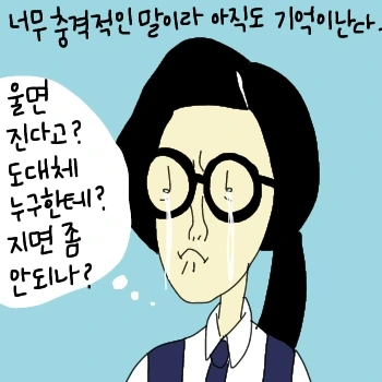 요즘에 주변에 사람들이 너무 힘들어하고 안 좋은 일들이 일어나서 내가 위로를 해주게 되는데, 울음이 나오는 것을 참지 말라는 말을 해주고 싶다. 울어서 슬픔이 줄어들고 기운을 차릴 수 있다면, 참지 말고 울자
