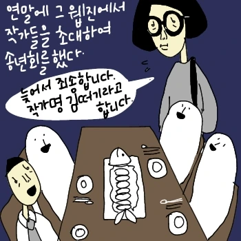 그래서 지인들이 실명을 언급하면서 댓글을 달면 그 댓글을 삭제했고, 어떤 사람들은 차단하기도 했다. 그리고 그 마음은 지금까지도 변함이 없는데, 다른 창작 생활하는 사람들도 나와 같은 마음이라는 것을 알게 되어 위안을 받은 적이 있어서 한 번 그려 보았다.