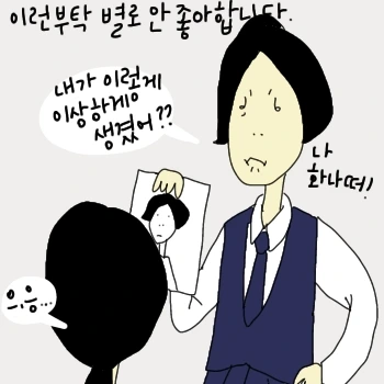 나는 그림을 잘 그리는 것도 아니고 정식으로 배우지도 않았다.그래서 그런지 그림 그려달라는 부탁받는 게 정말 싫다. 그래서 사람들이 잘 그리는 사람한테 가서 부탁하고, 나한테는 부탁하지 않았으면 좋겠다.
