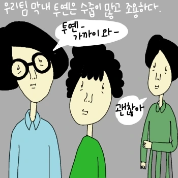 나는 생색낼 줄도 모르고 여우들한테 항상 당하는 곰이라 그런지 투옌같이 곰같이 일하는 사람이 얼마나 뒤에서 노력하는지, 얼마나 큰 재능을 가지고 있는지 잘 안다. 내가 울 때 따오는 좋은 말을 해주는 타입이라면 투옌은 조용히 휴지를 가져다주는 타입이다.내가 자주 언급하지는 않아 그림에 자주 등장은 안 했지만 투옌은 정말 괜찮은 사람이다.