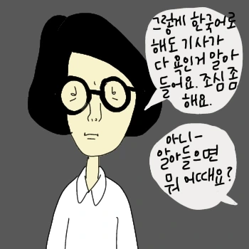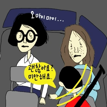 예전에 그렸는데 안 올리려다가 소재 고갈로 올리는 이야기!개인적으로 저런 태도도 인종 차별하는 거라고 생각한다. 한국에서는 본인보다 나이 많은 사람에게 절대 저런 말 안 했을 거면서... 아니면 한국에서도 했나?