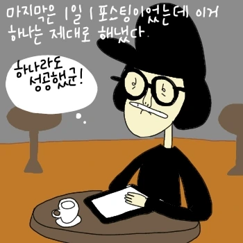 1일 1 드로잉은 성공했는데 솔직히 많이 힘들었다. 그림 퀄리티도 그렇지만 내 인생이 그렇게 다이나믹하지 않아서 소재가 없어 힘들었다.