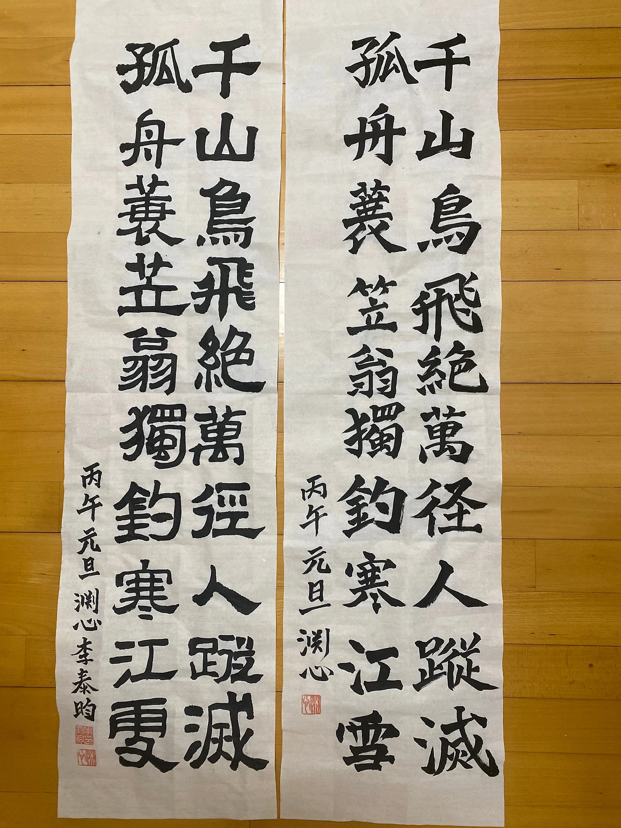 온 산엔 새 한 마리 날지 않아 고요하고, 길이란 길엔 사람 자취 모두 끊겼네.