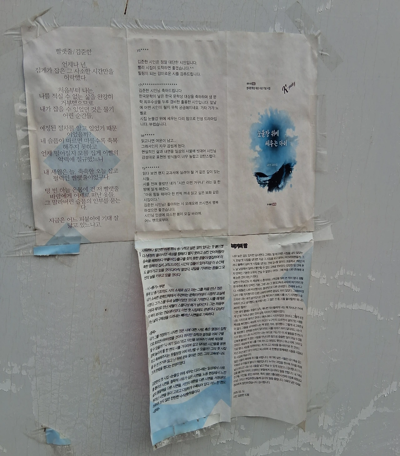 네 마음 한 귀퉁이 허락 없이 빌렸을 뿐 끝내 바람 같은 세월에 뜯긴 이별 우리 함께 서로의 하루에 새긴 은유와 때론 네 오해를 산 비문들 이제 긴 슬픔에 젖은 내 가슴 위에 짧았던 추억의 문장들만 먹빛 절망처럼 번질 뿐
