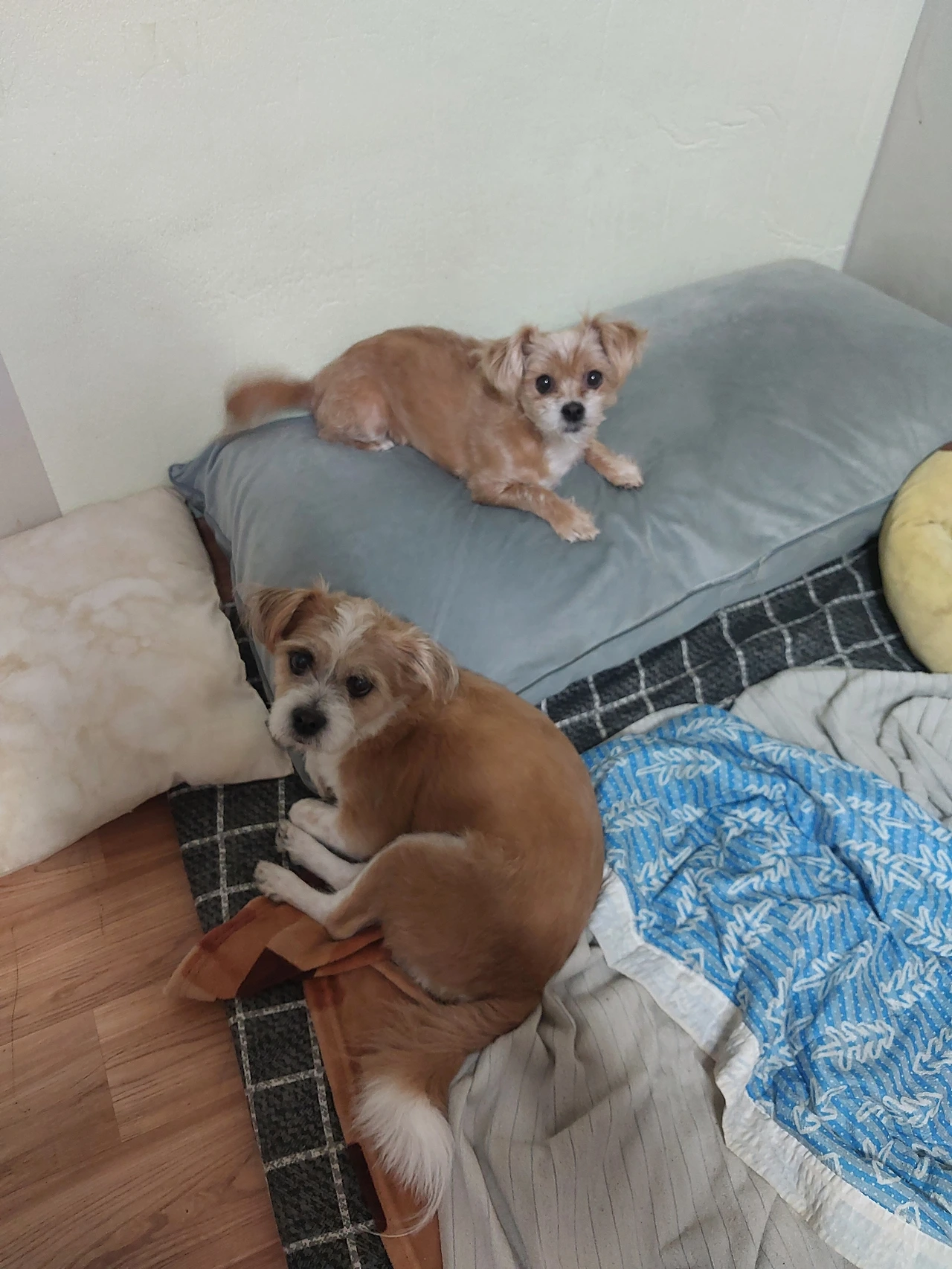 그래서인지 다롱이는 동네 한 바퀴를 돌면 얼른 집에 가서 간식 달라고 앞장선다. 너무 넓은 세상을 살고 있는 아롱이다롱이와 나, 청소하기도 힘든데 다시
