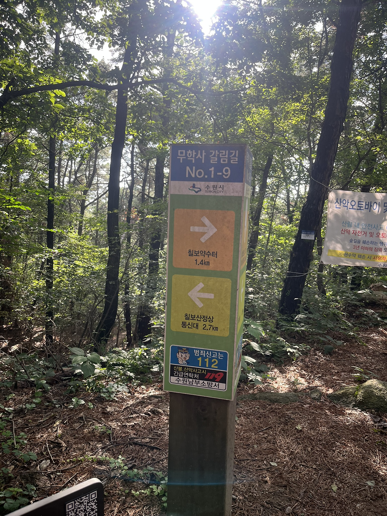 오늘 코스는 칠보약수터를 찍고 칠보산 정상까지 다시 올라갔다가 베이스캠프로 복귀하는 것이다. (베이스캠프라고 해봐야 큰 나무 뒤에 숨겨둔 보급품이 들어있는 나이키 리저블 백이 전부다.)