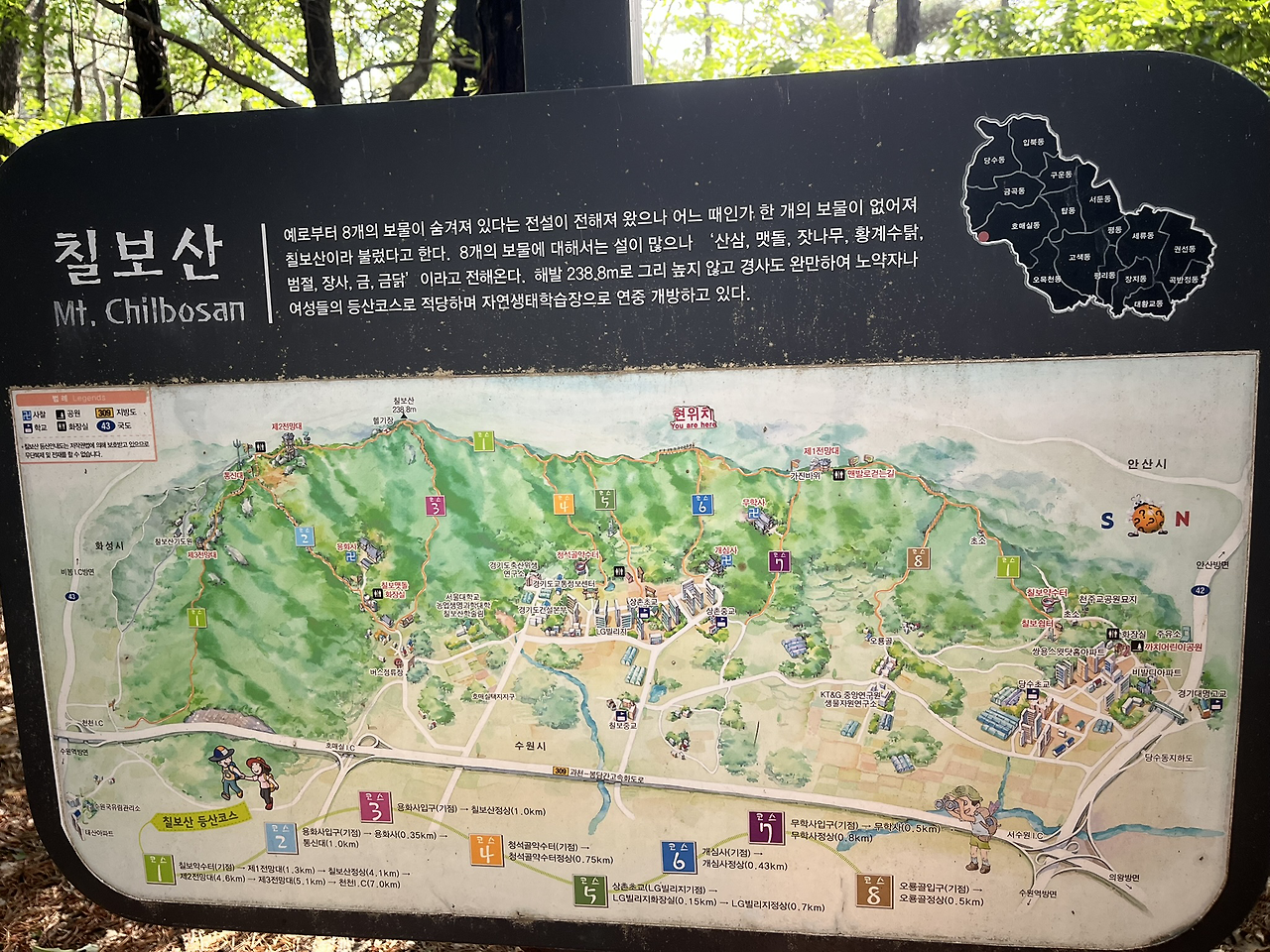 집에서 차로 10분 거리에 해발 239미터의 낮은 산이 있다. 칠보산.