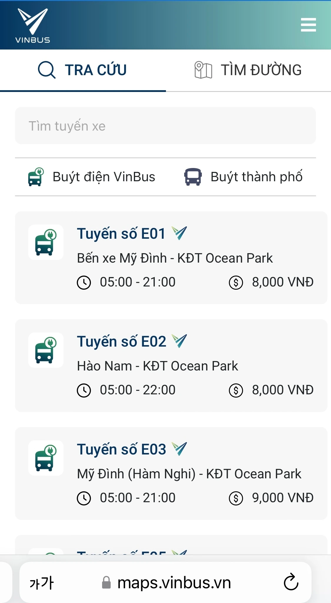 또 다른 방법으로 하노이 기준 Tim Buyt이라는 앱은 영어와 베트남어로 하노이 시내버스 노선을 확인할 수 있다.