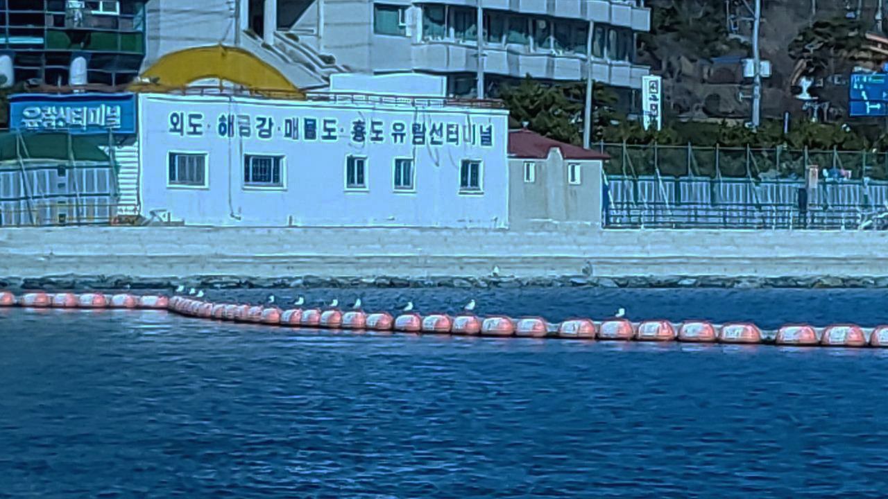 간단히 요기를 하고, 선착장에서 배를 기다렸다. 수평선 근처에 두 개의 등대가 보였고 그 앞으로 빛이 산란하고 있었다. 구름은 적었고 바람은 차가웠지만 볕이 좋아서 다행이라 생각했다.