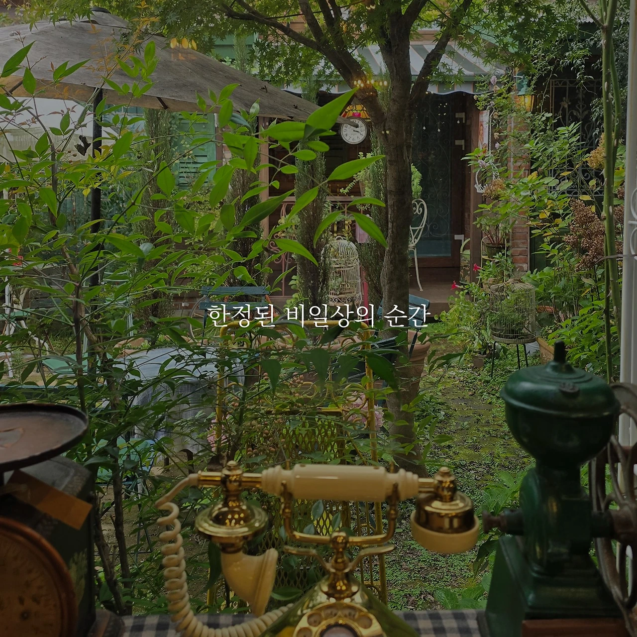 더 많은 시간이 묻은 물건들, 오지 않는 전화기와 그라인더, 그릇 같은 골동품 위에 얼마간 쌓였던 먼지가 되어보기도 했었다 기꺼이 눈앞에 보이는 정원을 우리만의 정원이라 여기면서 정원 초과 경고등이 들어온 엘리베이터를 타고 있던 기존의 승객처럼 능청스럽게 그곳에 머무르고 싶었던 어린 날을 기억하면서
