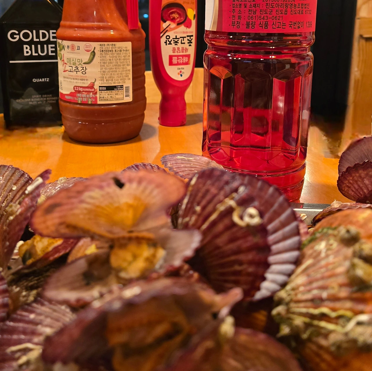 삶은 가리비 껍데기를 나누고