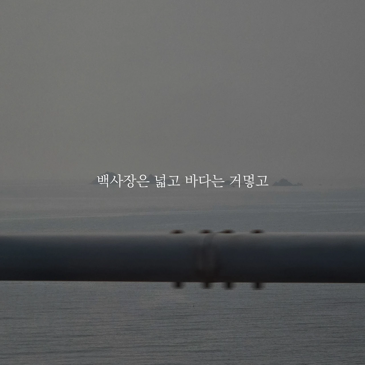 떠나야 했어떠나면서 발견한 풍경저것은 언제부터 저기에?바다처럼 높고 낮아지는 기분 끝나는 언제부터 여기에?우리였던 길에 혼자 다시 왔네혼자가 아닌 혼자랄까잠든 사람들과 잠들고 싶은 하루떠나온 곳에서 떠나갈 사람과 이야기를 했지백사장은 넓고 바다는 거멓고죽음과 가까운 동해가 좋아비틀거리다가밤을 욱여넣고암전