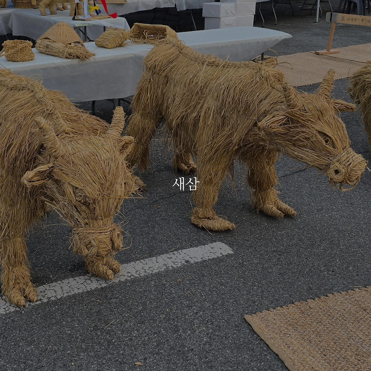 소처럼 일하던 때도 있었지. 함께라서 툭툭 털고, 욕 한 마디 뱉고 넘기는 하루들. 이제 내 집은 여기가 아닌 저기에 있는데, 시간이 지나 꽤 많은 것이 달라졌는데. 네가 만든 판에 놓인 짚소 두 마리. 기억 나나? 우리 쟤들 들고 나르던 시절. 그때 부서진 꼬리인가. 아니네, 새 거네. 시간은 가끔 무섭기도 하다. 어쨌거나 우리는 여기에 있다. 비교적 온전한 상태로, 조금 나은 위치에서. 힘내 보자. 어쨌거나 우리는 자라고, 안 좋았던 것들은 옅어지기 마련이니까.