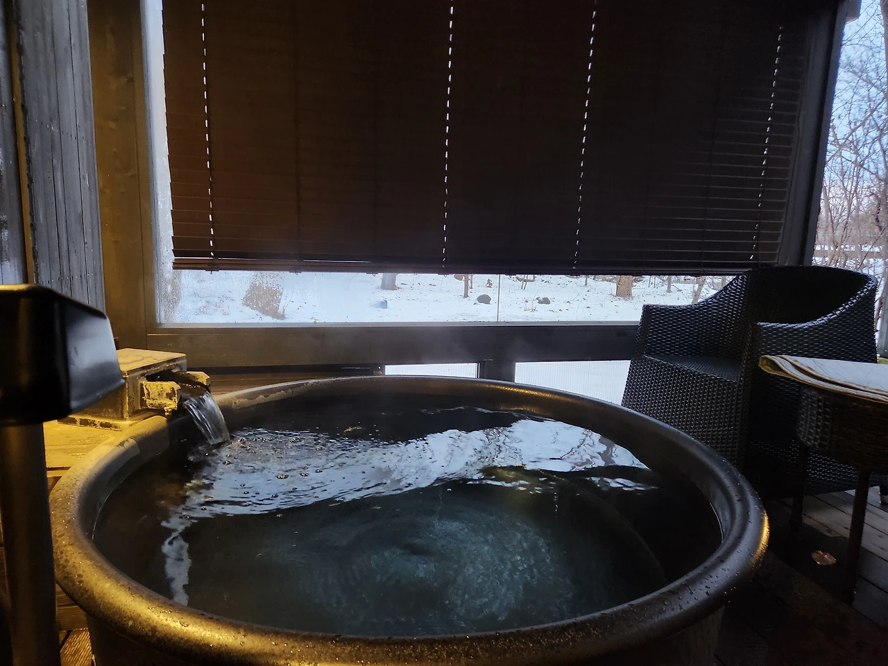 눈 맞으며, 탕 안에서 술 마시기는 못해도 세 개 중 두 개씩은 번갈아가며 할 수 있으니 소원을 이뤘다고 하겠습니다