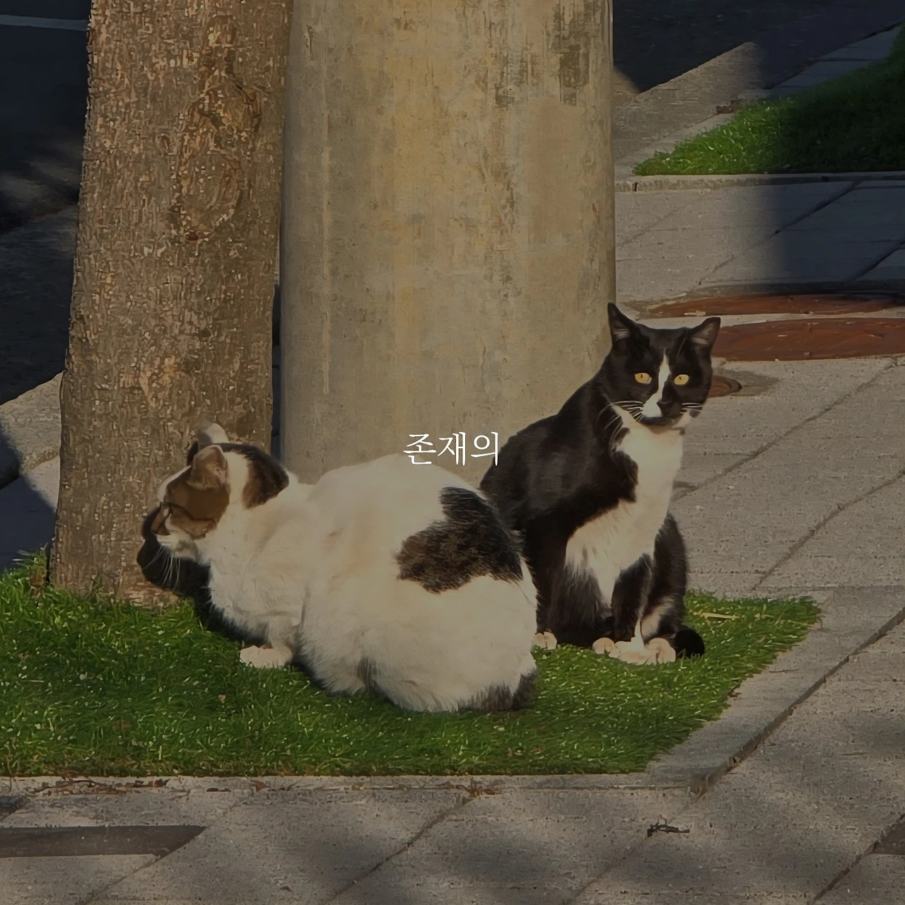 검정 : 그대 그쪽을 잘 보시오. 나는 커다란 무엇과 눈을 마주쳤소.하양 : 그대가 언제나 진심인 것을 알지만 늘 경계해야 하오. 내 등허리에 있는 하트 무늬를 너무 빤히 들여다보지 마시오. 우리의 역할은 밥을 기다리는 것뿐.커다란 무엇 : 빤히 쳐다보는 놈 하나, 하트 하나. 고양이 팔자가 좋다. 출근도 안 하고.