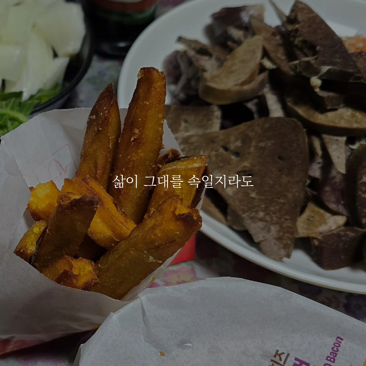 식은 고구마프라이, 남은 순대와 허파