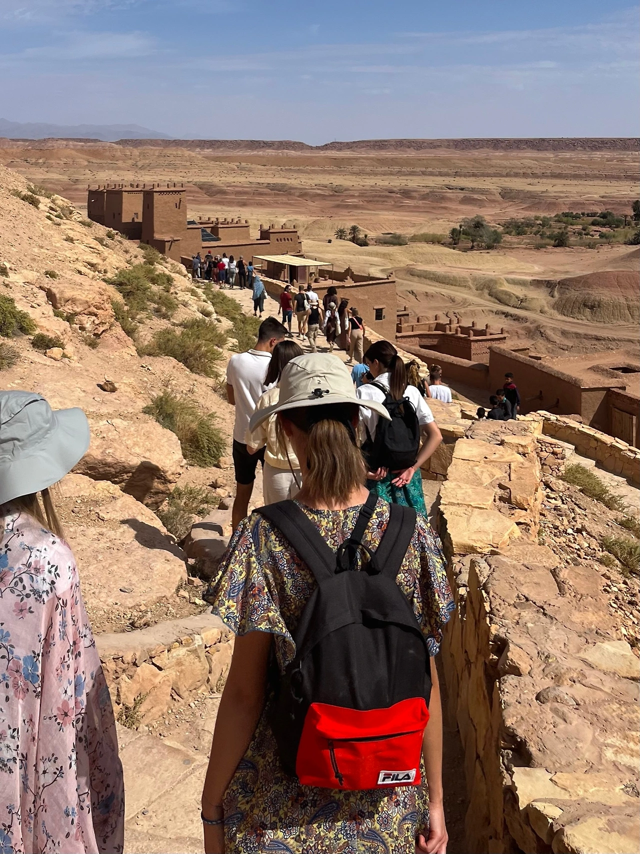 마을의 정상에 도착하니 시선이 막힘 없이 사방으로 뻗어나갔다. 이곳이 왜 요새였는지 바로 알 수 있었다. 꼭 바다를 보고 있는 기분이었다. 그곳의 바다는 붉었다. 이글거렸으며 고요했다. 아이트 벤 하두는 그 위에 덩그러니 놓인 섬 같았다. 모로코에서 본 수많은 건축물 중에 가장 인상 깊은 곳이었다. 무신론자인 나는 화려하게 꾸며진 종교 건물보다 자연과 어우러져 투박하게 놓여있는 건물에 더 많은 애정을 느끼곤 했다. 인간이 이토록 척박한 땅에서도 살아갔다는 사실은 묘한 감동을 줬다. 가끔은 풍경 그 자체가 하나의 위로가 되어 다가오기도 한다. 계속해서 이렇게 낯설고도 경이로운 세계에 가닿기를 바랐다. 다음 행선지는 사막이었다.