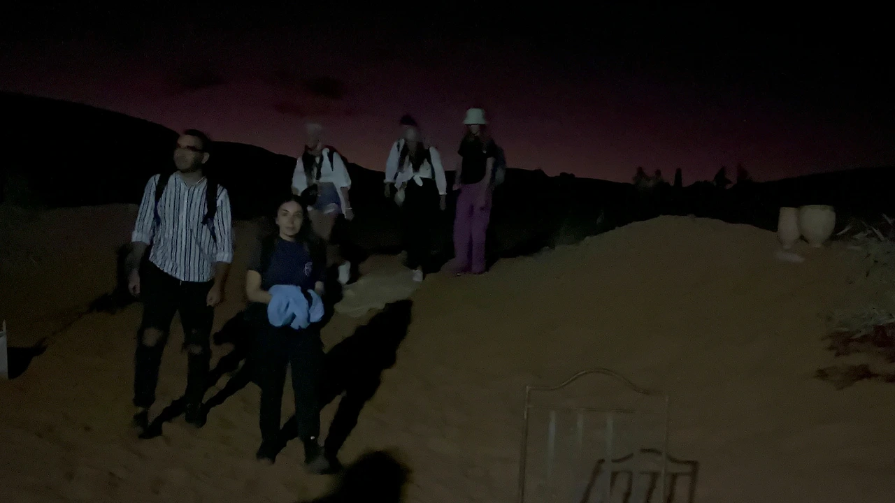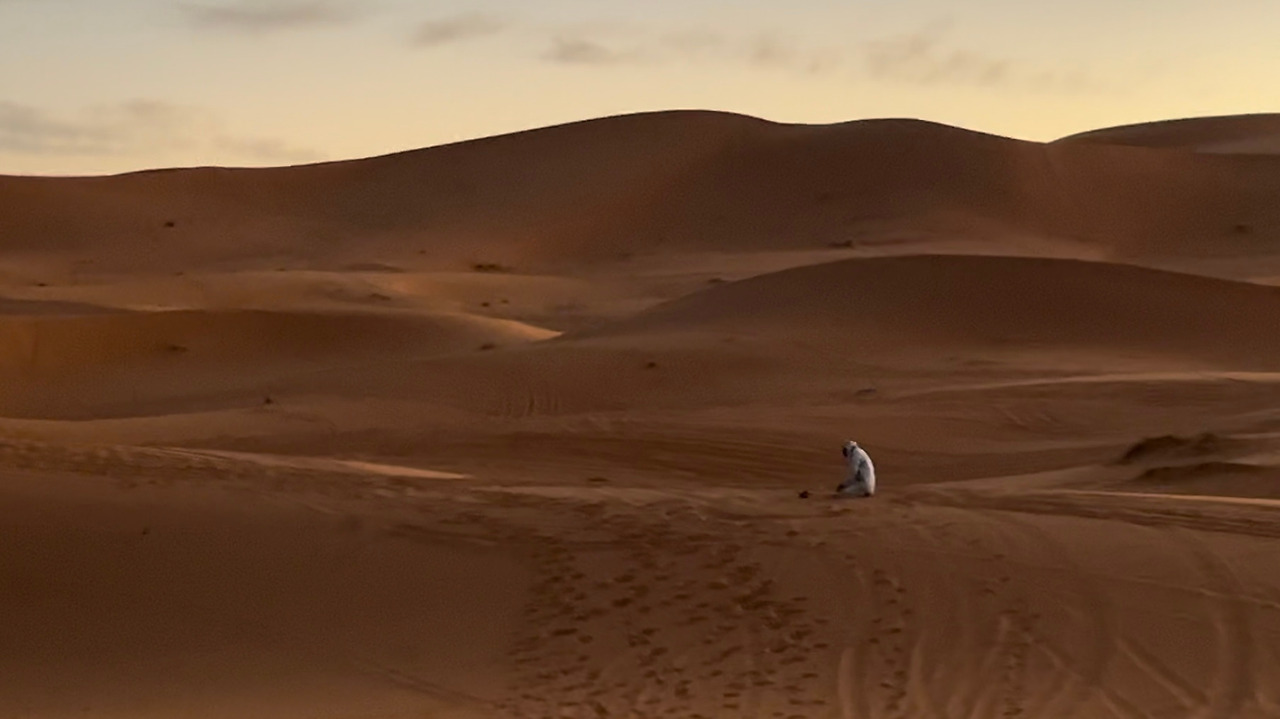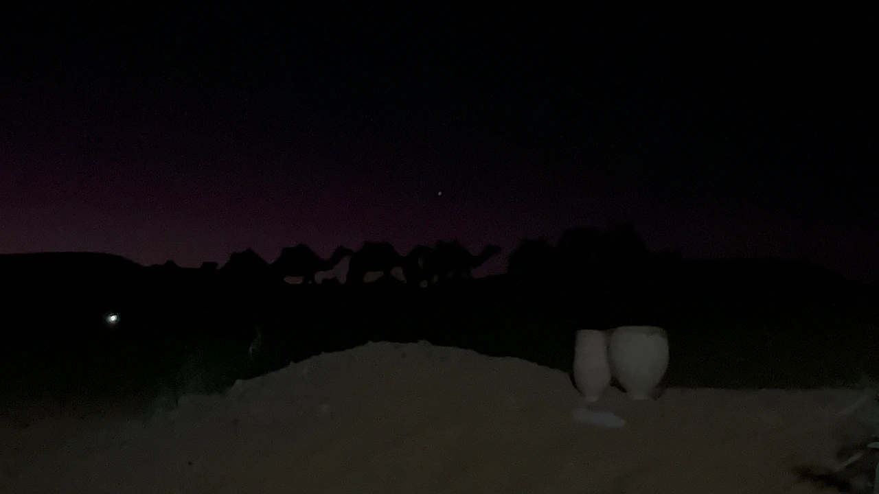 혹 위의 기울어진 안장 덕분에 엉덩이가 금방 아파왔다. 게다가 몸이 어찌나 흔들리는지 평소에 잘 안 쓰던 부분의 근육까지 서툴게 써가며 균형을 유지해야 했다. 그렇게 1시간 정도 낙타에 몸을 맡긴 채 갸우뚱거리며 사막을 감상했다. 세차게 주황빛을 내뿜던 태양이 붉은 수평선 너머로 서서히 자취를 감추었다. 하늘은 잠깐 보랏빛을 내더니 이내 까맣게 물들었다. 가로등도, 손전등도, 작은 불씨 하나도 없는 원시적 공간은 놀라운 속도로 어두워졌다. 희미한 빛으로 확보한 시야에 약간의 상상력을 더해 눈앞의 광경을 놓치지 않으려 애썼다. 엉덩이를 씰룩이며 나아가는 낙타와 그 위에서 덩달아 씰룩이고 있는 안나의 실루엣이 보였다.