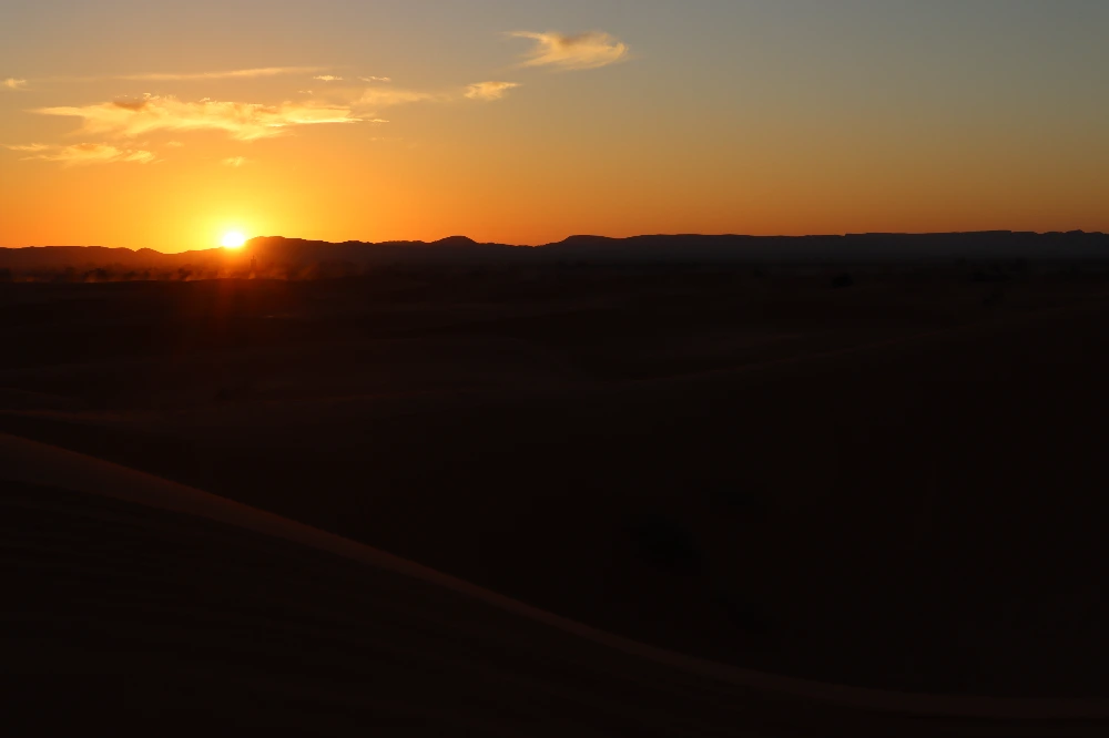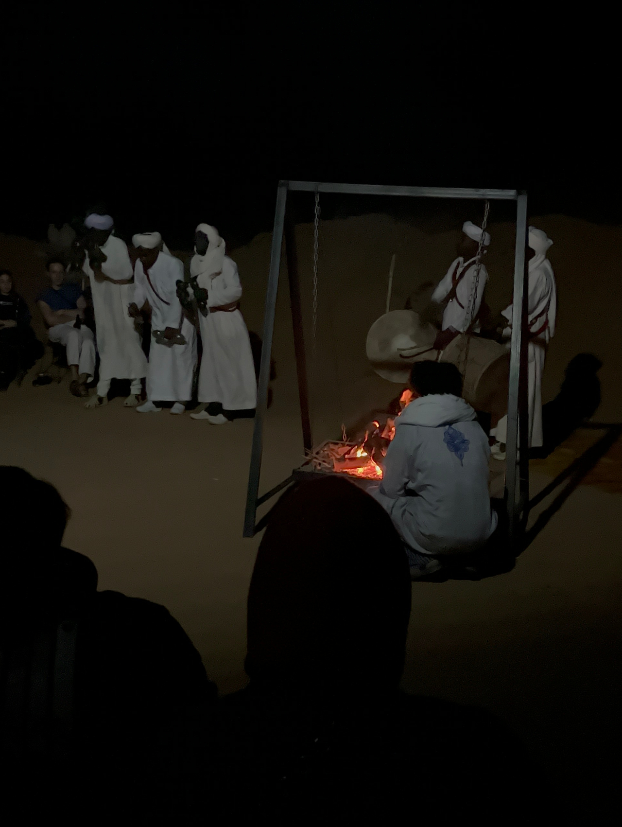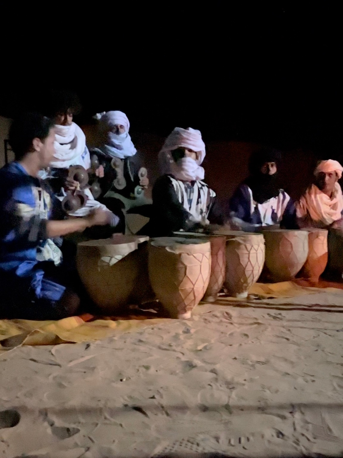 낙타의 걸음이 느려지는 것 같더니 저 멀리서 불빛이 보이기 시작했다. 베이스캠프였다. 짐을 풀고 식사를 마친 우리는 캠프 한 켠에 마련된 공연장에서 밤을 맞이했다. 말이 공연장이지 그냥 단단하게 다져진 모래 바닥이었다. 그 위에 모닥불을 피워 놓고 둥글게 둘러앉아 베르베르인의 전통 공연을 감상했다. 그들은 북을 두드리고 방울이 달린 악기를 흔들며 노래를 불렀다. 선율이라고 칭하기엔 애매한 음의 연속이었지만 독특한 리듬이 충분히 흥을 북돋았다.