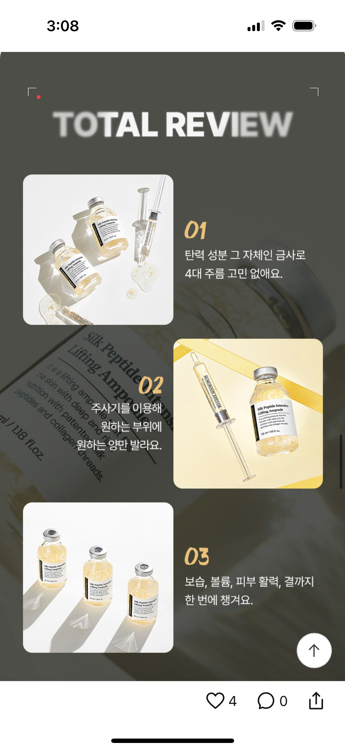 우리는 상세페이지와 광고에 '실크 펩타이드'가 얼마나 좋은지 구구절절 설명했다.