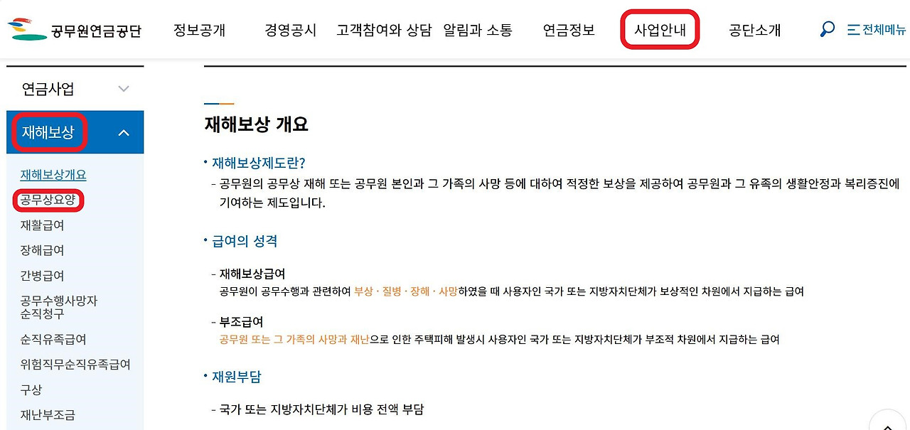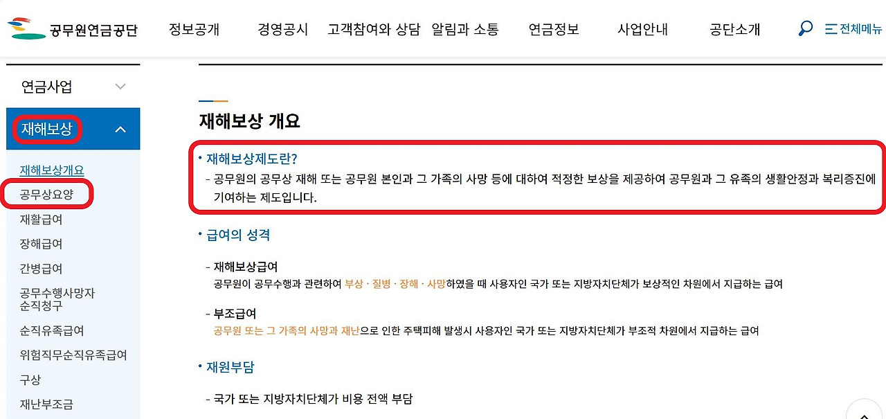 공무상 재해에 대해 보상을 제공한다는 취지로