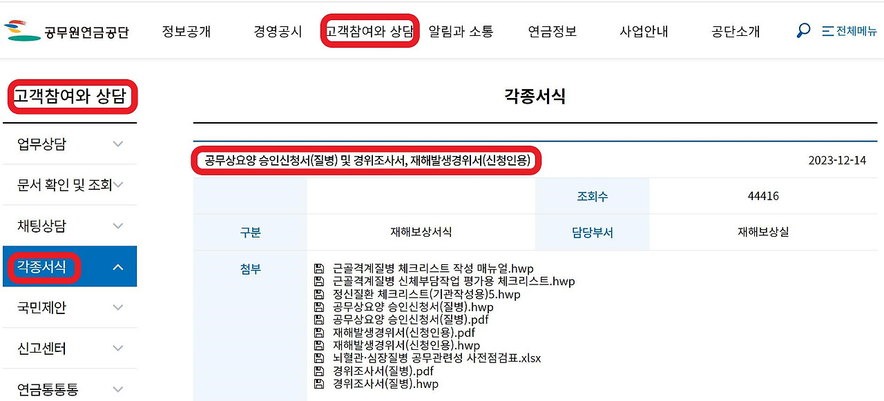 요기 ↓ 공무원연금공단에서 올려 놓은