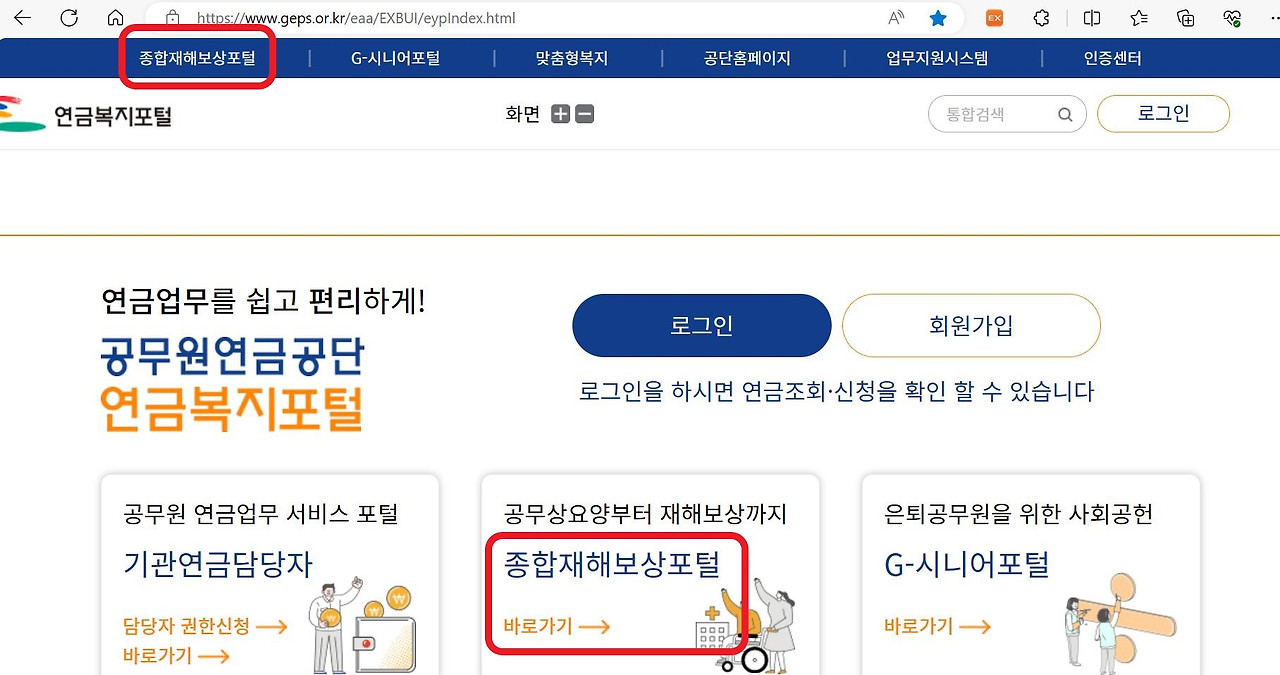 공무원연금관리공단의 연금복지포털에서 들어갈 수 있네요~