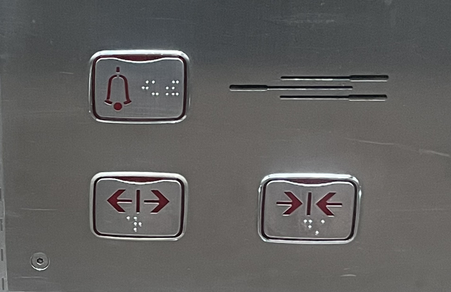 엘리베이터 ‘닫힘’ 버튼을 꾹 누르는 모습에