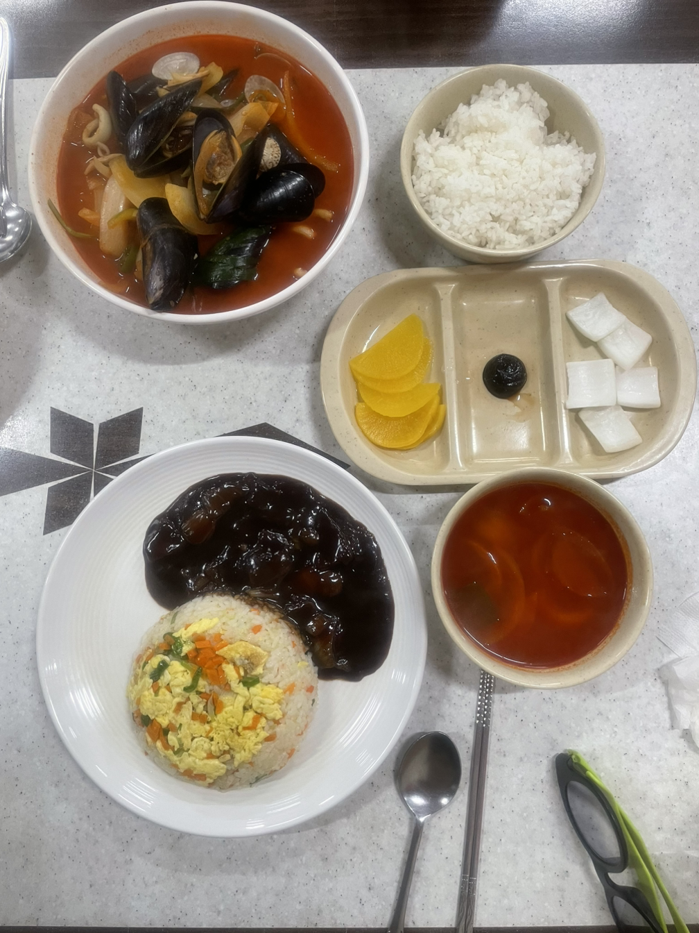오징어 두 조각 건져진 것 말고 해산물이란 눈 씻고도 못 찾게스리 양파 썰은 것 투성이인데 어라, 의외로