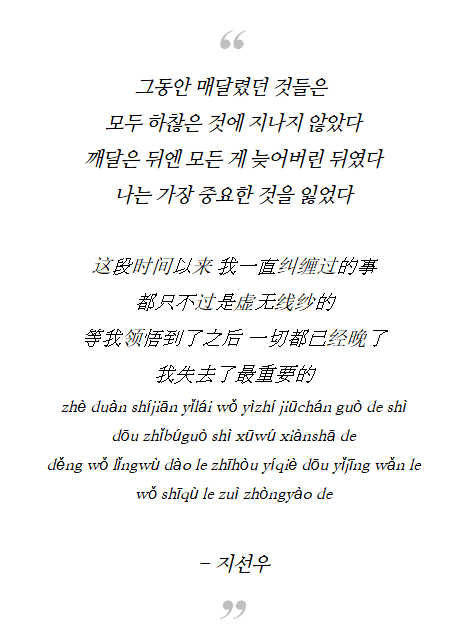 그를 위해 사람의 세계에서 사람은 말을 해선 안 된다. 특히나 자기 본심에서 우러나오는 말들.