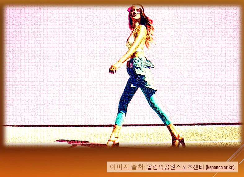 패션 모델처럼 다리를 붙이고 지면을 차듯이