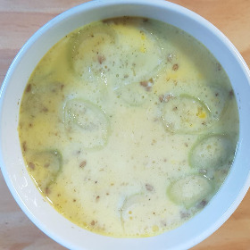 준비물: 달걀 2개, 물 달걀 2개 분량, 멸치액젓이나 맛소금1t스푼. (들기름 1t 스푼. 파랑 깨소금도 있으면 넣고 없으면 말고)