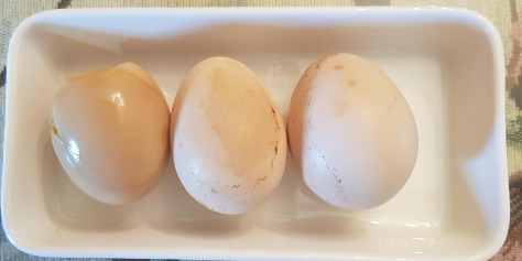 온갖 분탕질을 하고 다닌 닭이 낳아 놓은 것이라 물에 깨끗이 씻는다.